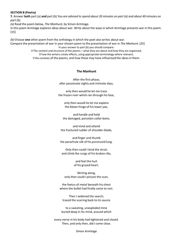 Wjec Eduqas Poetry Anthology Mock Exam Paper The Manhunt