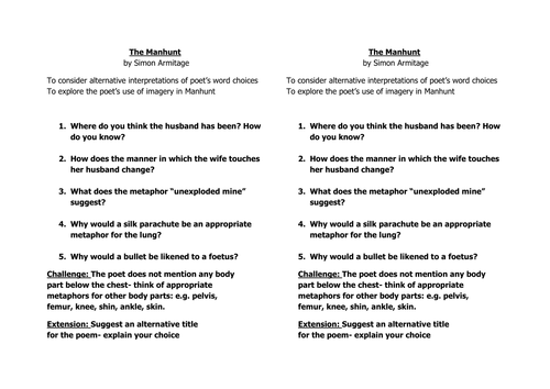 Matching Metaphors The Manhunt By Simon Armitage Ks4